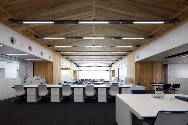 熊本駅の北方に位置する鉄道高架下の敷地に計画されたJR九州の新熊本支社である。JR九州では地元木材を用いて車両や駅舎等の木質化を積極的に行っている。そのため本建物においても地場産材を用いた木造化、とりわけ「CLT」という新たな木質建材を鉄道高架下に用いる試みを行った。地場産の木材を用いたCLTによってかたちづくられる建物は、地域貢献と先進性を体現し、木のぬくもり […]