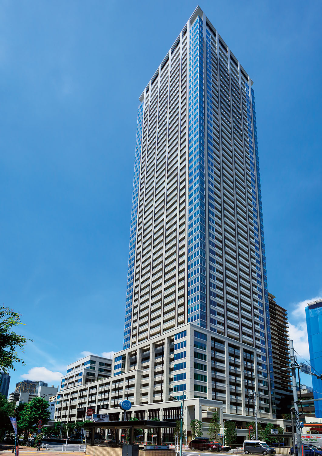 少しでも早く引き渡しができるように、設計チームは53階建の超高層部と11階建の中層部を、住宅共用部と商業空間の回廊=ブリッジでつなぐという建物の構成を提案。全体竣工に先立ち、2013年8月に中層部を先行で完成させ、希望する地権者の方々の早期再入居を実現した。