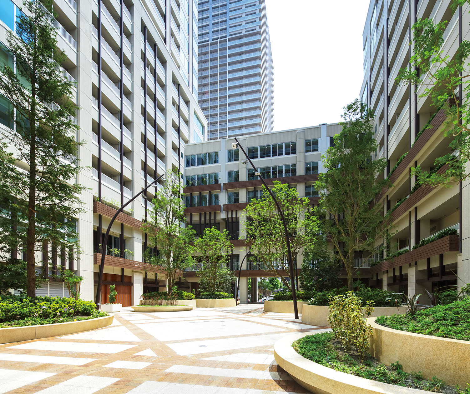 「中層部と高層部をつなぐブリッジというバッファ ゾーンが象徴しているように、月島では、建物同士だけでなく、建物と人、生活、広場、そしてこの地区をつなぎたいと思っていました。特に広場は憩いの場として機能してほしかったので、今まで地下で待ち合わせしていた月島駅の利用者が、地上の広場を利用し、地域住民の方々にとってはパティオのような存在になっていることは、狙い通りという感じです」という。