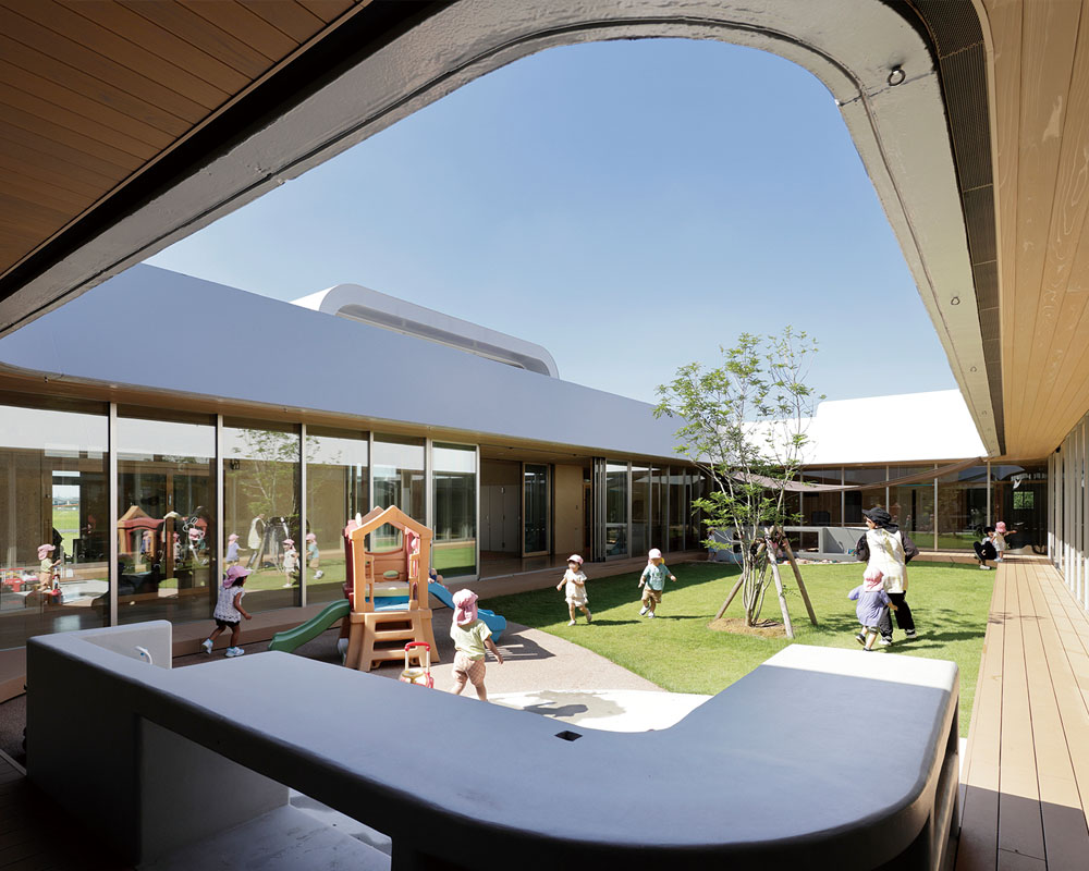 “As we envisioned when we first came to this site, we were able to create a building and landscape that serve as a symbol of childrearing, along with visible environmental measures,” says Okumura.
