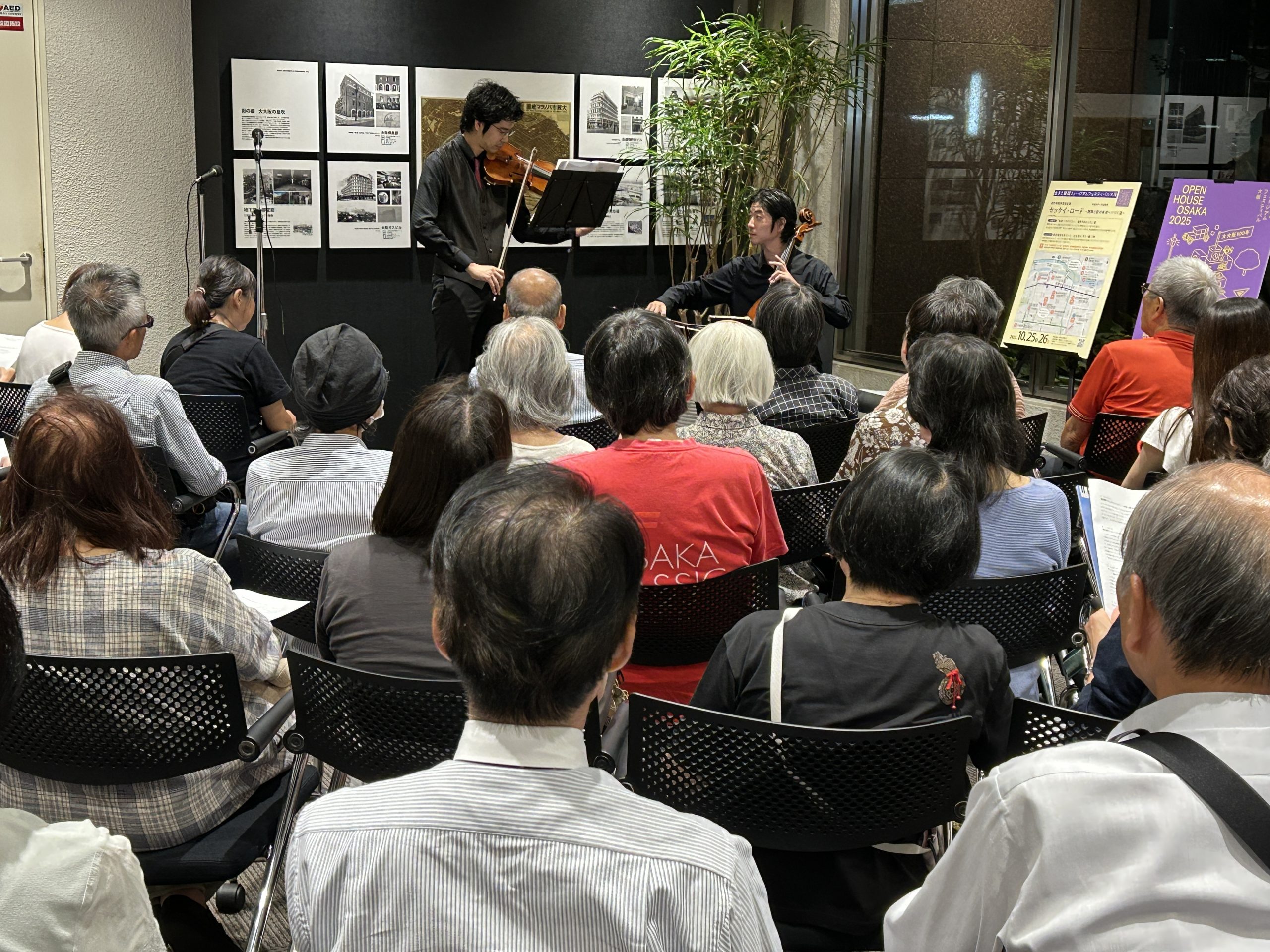 10月2日(木)には、当社大阪事務所1階を会場として、堀江牧生氏(チェロ)堀江恵太氏(ヴァイオリン)兄弟によるデュオコンサートも催されました。昨年に引き続いて今年もたくさんの地域住民の方にご来場いただき、たそコンに花を添えることができました。