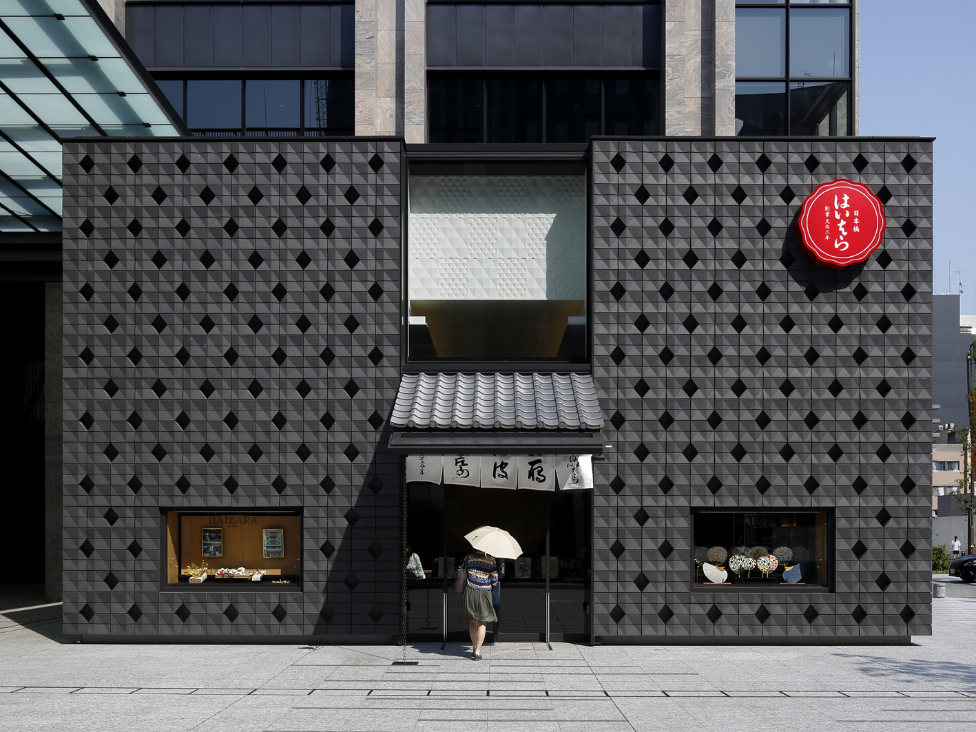 榛原は1806年に東京日本橋に創業し、以降200年以上続く老舗の和紙舗。創業の江戸期には、榛原製木版団扇が大衆の間で流行、後には計測記録用紙の独自開発など、その時代の技術や精神を取り込みながら日本橋に店を構え続けてきた。創業から200年が過ぎ、日本橋二丁目北地区再開発に伴い新店舗が建設された。榛原の歴史と姿勢を汲みとり、新店舗のデザインは伝統技術と現代技術を組み合わせて、「老舗の伝統を新世代へ/新世代の江戸の美」をデザインコンセプトとした。外装(建築:株式会社日建設計)は、瓦成型職人×3Dデジタル金型加工による「3Dカワラブリック」で構成され、内装(デザイン:株式会社オリバー、デザイン監修:当社)は、越前和紙職人による大判手漉き和紙と大判千代紙の壁面展示に加え、デジタルファブリケーションによる多面体レリーフ版を各所に施した構成としている。内外装に表現したパターンは榛原の伝統紋様「色硝子」をモチーフにしており、榛原のアイデンティティの象徴として、街や行き交う人々に「老舗の伝統と革新」を感じとってもらえることを意図している。