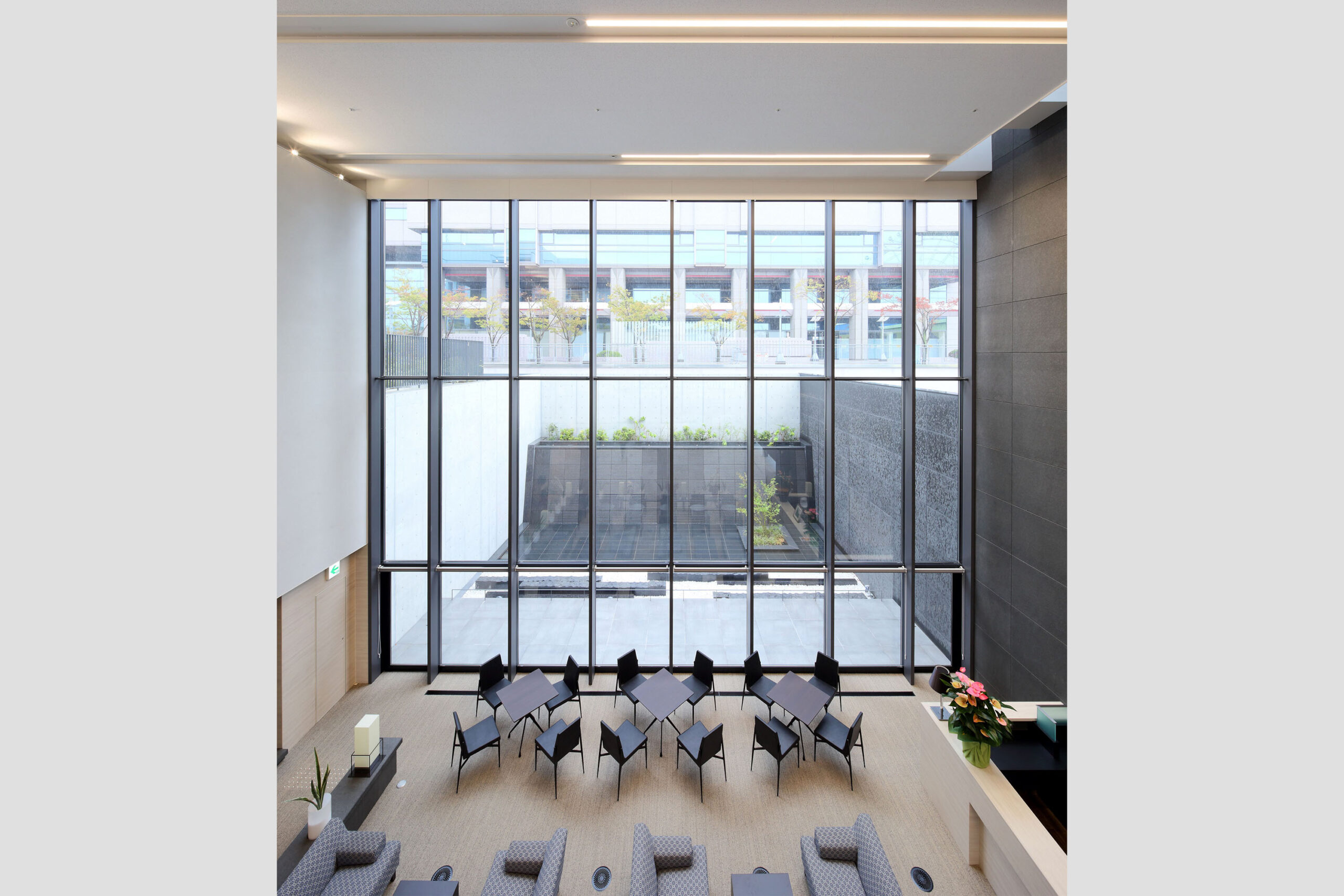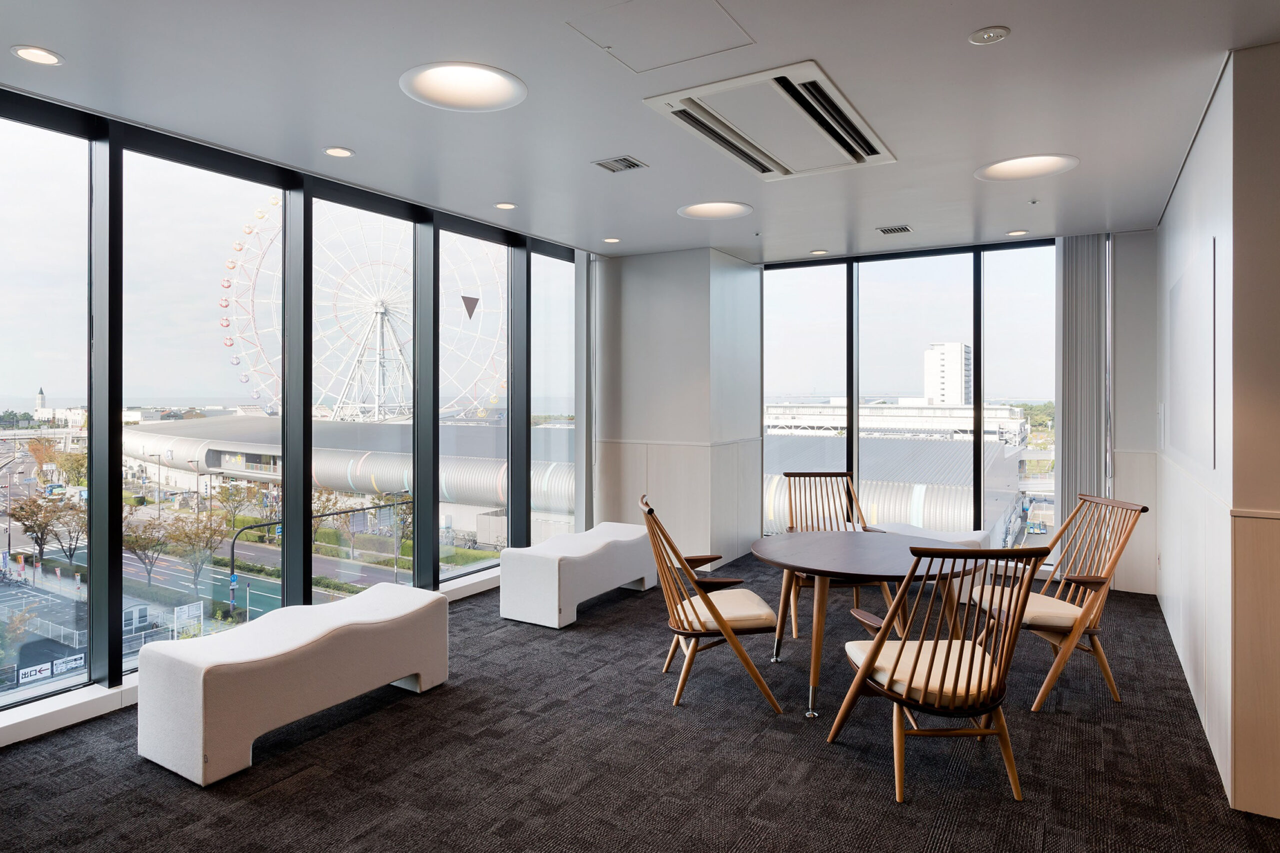 りんくうタウン駅南側に建つ、療養を中心とした病院のプロジェクトである。駅前の敷地であることから、駅と直結できる屋外デッキを設置して、駅の改札レベルから病院2階へアクセス可能な計画としている。来院者を迎えるエントランスホールは、2層吹抜のゆとりある空間を確保し、内部は石等の素材を活かしたデザインとし、さらにハイサイドライト、カーテンウォールにより自然光を採り入れ、優しい空間となるよう配慮している。病棟計画では、全床個室とすることで療養環境とプライバシーに配慮した計画としている。また患者に近い看護を実現するため、個室5室を1ユニットとした多床室的個室群とし、スタッフの労働環境向上にも寄与している。スタッフ動線と患者動線を分離した明快な平面計画とし、また病院の機能拡張などの将来増築を見越したした配置計画としている。