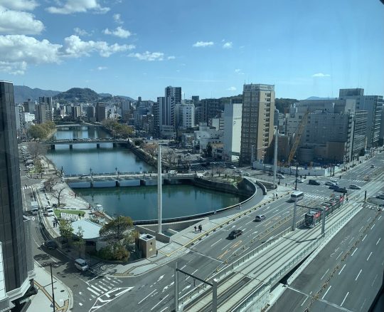 戦後長らく、河川空間は都市の主役ではなかった。東京や大阪の掘割は高速道路用地に充てられたりした。21世紀に入ってからは河川の活用や景観整備が全奥的に進み、広島でも、受け継がれてきた賑わいを、川が効果的に媒介することになった。それは広島の景観に奥行きを与え、面白くした。中心地区から橋を二つ渡った広島駅周辺ではこのところ集客機能が厚みを増し、広島電鉄市内線(路面電車)が新しい広島駅ビル「minamoa」に乗り入れた効果もあって、街が有機的につながってきた。駅前の再開発ビル「エールエールHIROSHIMA」の3フロアには広島市立図書館などが移転してきている(この設計に携わった)。